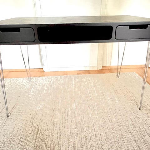 Helt gratis. Completely free. A very long skrivbord that is 246cm x 64cm. 5 legs with independent height adjustment possible for each leg. Currently dissassembled so it can be carried out of apartment. Legs attach with standard screws (screws included).