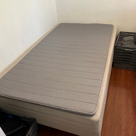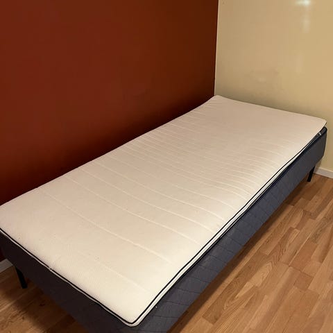 90 säng i bra skick med bäddmadrass.