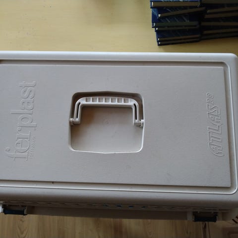 Kattbur i gottskick. Fattas två vred men fungerar ändå bra att bära katten i.