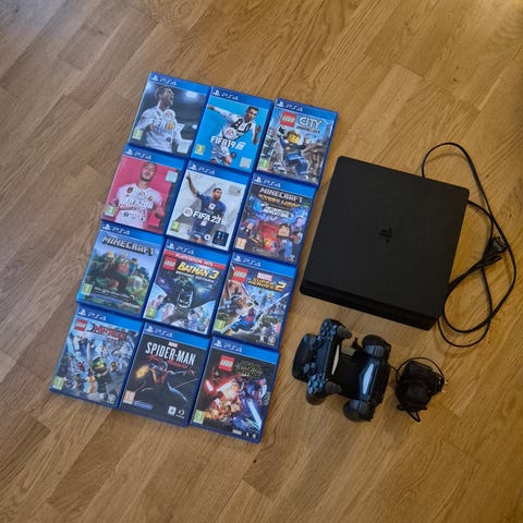 Sony Playstation 4 spelkonsol med handkontroller och spel