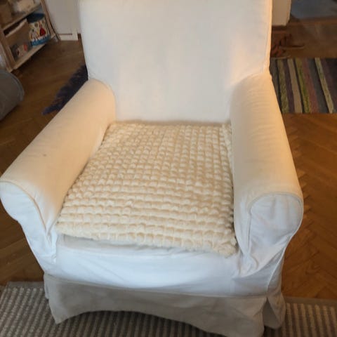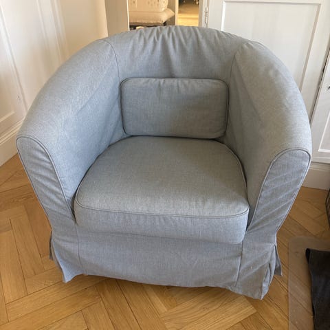 IKEA Tullsta fåtölj med avtagbar vit klädsel.