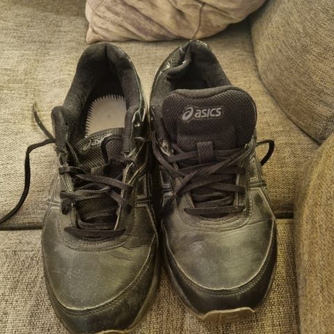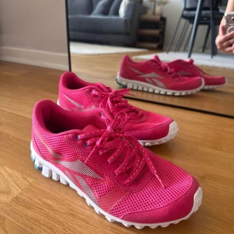 Asics löparskor i storlek 39. Skorna är i rosa och gula toner med snörning framtill. Avsedda för löpning och annan träning. Yttermaterial i textil och syntet med mönstrad ovandel och vadderad plös och hälparti för ökad komfort. Sulan är i gummi med dämpning anpassad för löpning på hårt underlag.