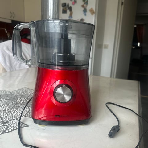 Bosch matberedare i vit plast med transparent skål och påfyllnadstub. Enheten har integrerad motorbas och avtagbar skål med handtag. Passar för hackning, rivning och blandning av olika råvaror i köket. Strömkabel med stickkontakt för användning i vanligt vägguttag.