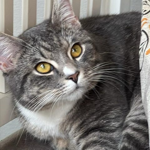 Mille är rumsren och en väldigt gosig katt, han kryper gärna upp i ens knä för att bli klappad, han ger sig absolut inte tills han känner sig nöjd😅
