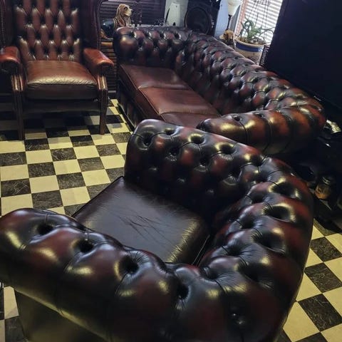 Mycket fin Chesterfield soffgrupp med tillhörande bord.