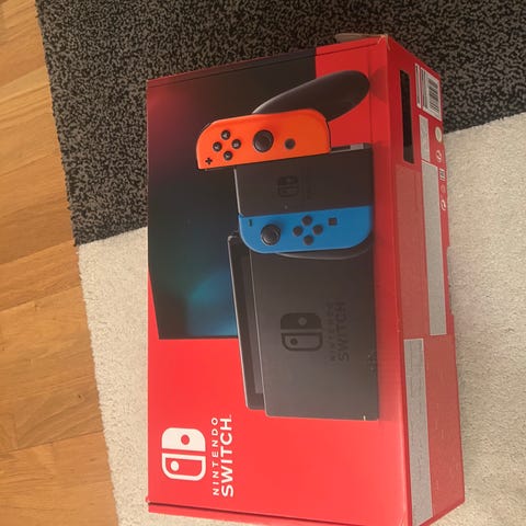 Nintendo Switch konsol med spelet Pokémon Legends Arceus. Konsolen är avsedd för Nintendos spelplattform Switch och kan användas både dockad till TV och i handhållet läge. Spelet Pokémon Legends Arceus är i fysisk utgåva på spelkort med tillhörande fodral.