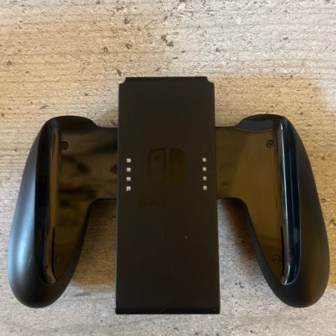 Nintendo Switch Joy-Con handkontrollhållare i svart plast. Hållaren är avsedd för att montera två Joy-Con-kontroller för att användas som en traditionell handkontroll till Nintendo Switch-konsolen. Passar original Joy-Con och har greppvänliga handtag för stabilare spelande. Ingen laddningsfunktion är inbyggd i denna modell utan fungerar som en passiv hållare för kontrollerna.