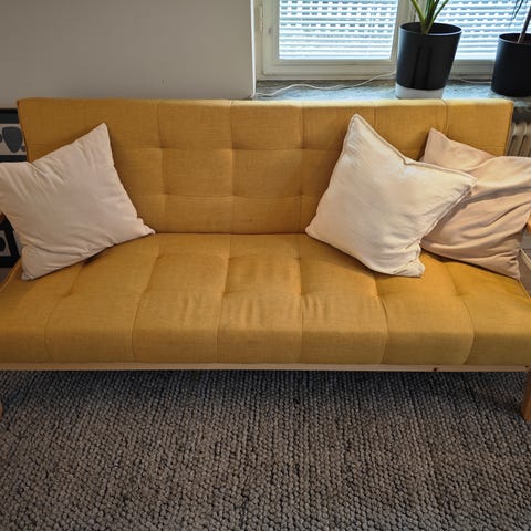 Bedsoffa med slitage. Slitaget är icke synligt från de flesta vinklarna.