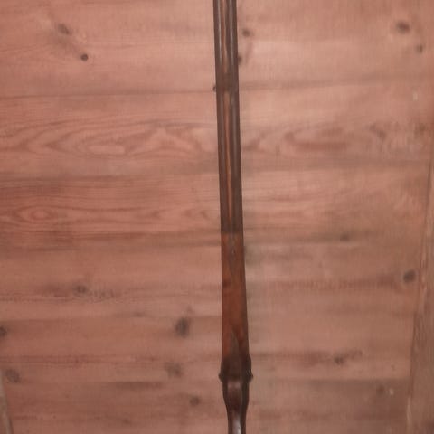 I utförande som ett litet avsågat hagelgevär. Slaglås tillverkad innan 1890 och ej avsedd för gastät enhetspatron. Åldersgräns 18 år. Kräver ej licens. Fungerar fint. Mycket kraft i fjädrarna. Nya nipplar. Cal ca 10mm.