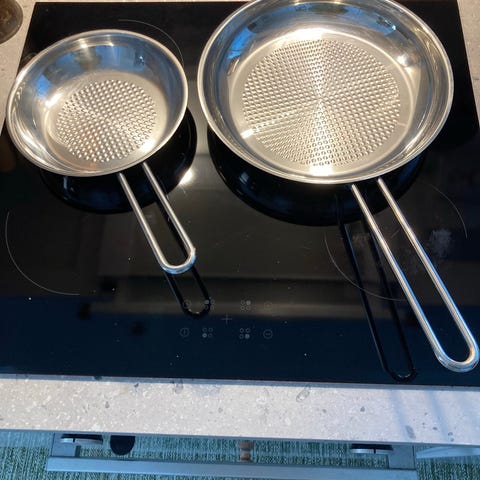 Jag säljer mina Tefal stekpannor i äkta stål då jag valt att köpa andra. Måtten är 24 cm och 28 cm. Bägge stekpannor ingår i priset.