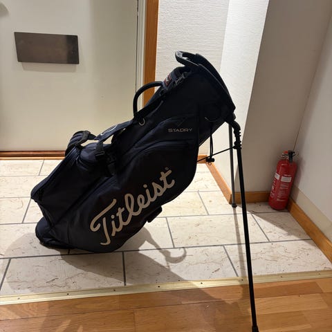 Säljer min Titleist Players 4 StaDry golfbag i vit/grå med röda detaljer. Lätt och smidig bag med benstöd som gör att den står stadigt på banan. Bra med fickor för bollar, handskar och annat man vill ha med sig.