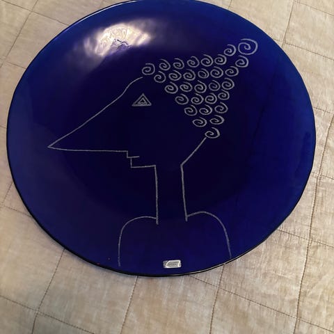 Stort blått glasfat från Steninge Slott