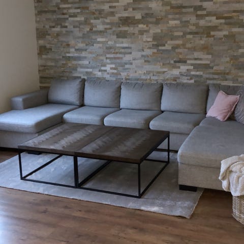Fin och rejäl soffa i bra men använt skick, inga fläckar. Kuddarnas klädsel är avtagbar och tvättbar. Från djur- och rökfritt hem. Kan tas isär i 3 delar vid flytt, hämtas senast tisdag .