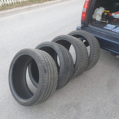 Säljer ett set sommardäck av märket Pirelli i mycket fint skick. Däcken har ca 5 mm mönsterdjup kvar och är jämnt slitna.