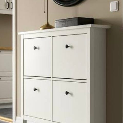 Använd i 1 år, är välskött och ser ut som ny. Hatthyllan finns ej kvar på Jysk men är till just denna skohylla.