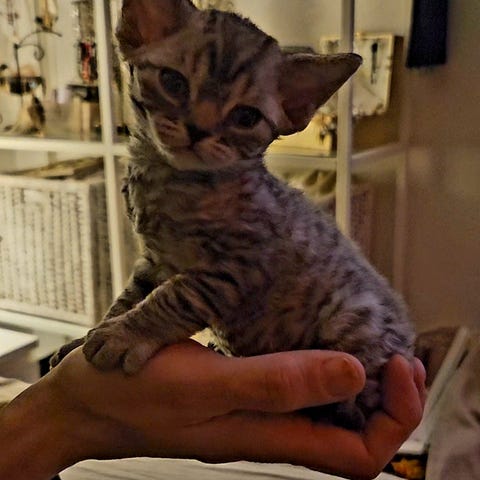 Han söker ett kärleksfullt förevigt hem med sällskap av en annan katt hos någon som vet vad en Devon kräver och vilken stimulans dem behöver för att må bra och såklart allt det där lite extra för det förtjänar han🩶