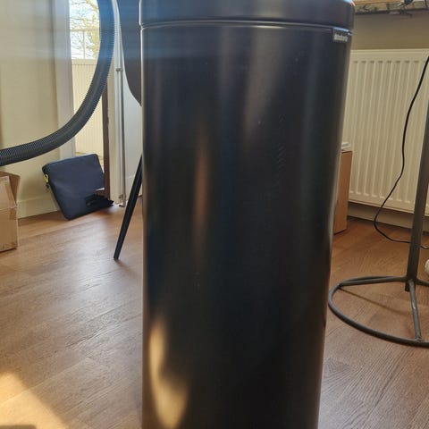 Snygg och praktisk soptunna. Vi har använt den för sopsortering av återvinning av kartong och glas så den har aldrig innehållit matavfall eller annat som luktar.