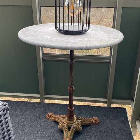 Det är 15st marmorbord med ben gjort av gjutjärn.