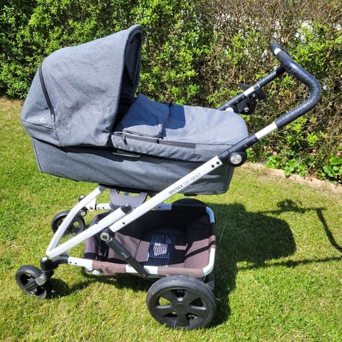 Regnskydd och myggnät ingår.