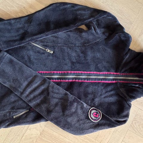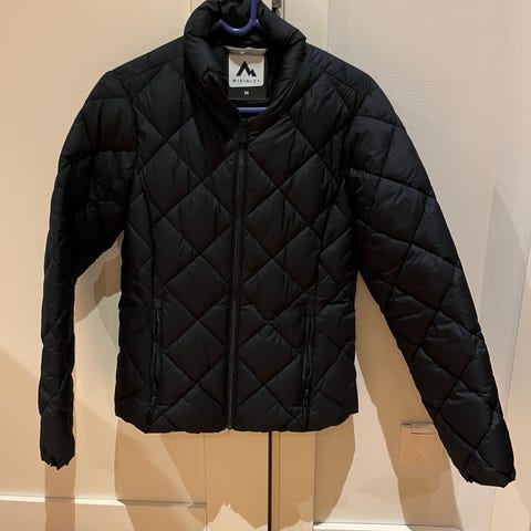 Svart jacka med dragkedja framtill och två fickor med dragkedja. En ficka på insidan bild 7. Jackan har en vadderad front och rygg med ett quiltat mönster. Ärmarna och sidorna är i ett slätare tyg. Jackan har en hög krage och en liten logotyp på bröstet.