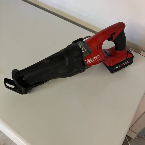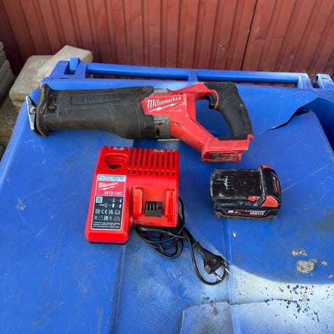 Milwaukee M18 FSZ tigersåg i röd och svart färg. Batteridriven modell för sågning i trä, metall och andra material beroende på valt blad. Kompakt konstruktion med gummerat handtag för bättre grepp. Snabbfäste för sågblad gör det möjligt att byta blad utan verktyg. Passar för rivningsarbeten, grovkapning och andra bygg- och renoveringsarbeten där en tigersåg behövs.