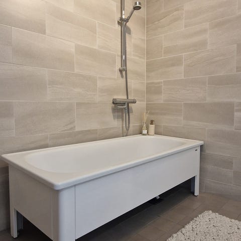 Rektangulärt badkar med halvfront, i emalj och med vitt utförande. Storlek 160x70cm. Det är ca 2 år gammalt och har använts väldigt sparsamt. Mycket bra skick.