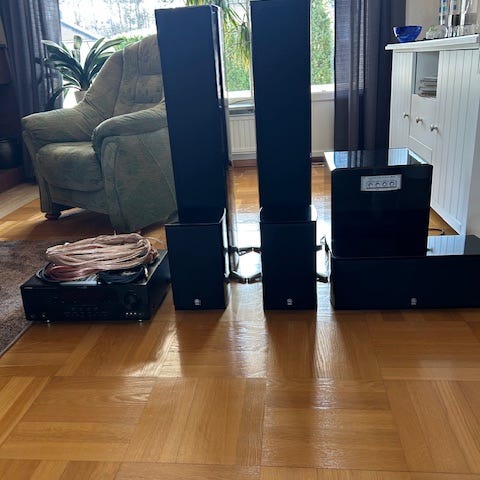 Säljer nu ett komplett och extremt kraftfullt ljudsystem från svenska Audio Pro. Det här är deras flaggskeppsmodell bland golvhögtalare tillsammans med den perfekt matchade subwoofern. Systemet levererar ett fantastiskt ljud med både finess och enorm kraft, oavsett om det gäller musik eller hemmabio.