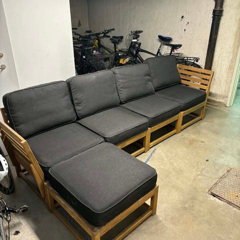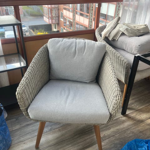Jag vill sälja min utemöblergrupp. Jag har två kompletta set och ett utan bord. Ett set kostar 1500, båda tillsammans kostar 2500, och alla tre tillsammans kostar 3000.