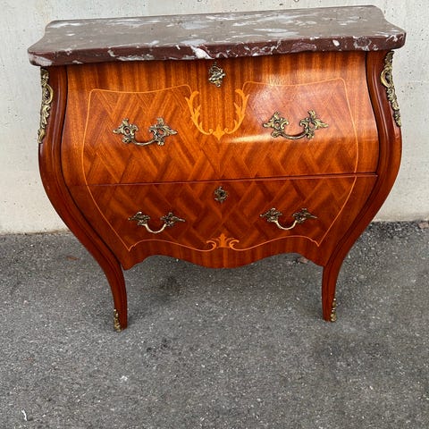 Vintage rokokobyrå i mahogny/marmorskiva. Tillv Josefssons Möbler, 1960-tal