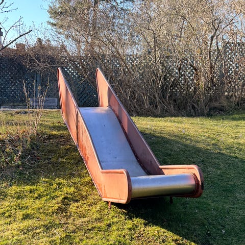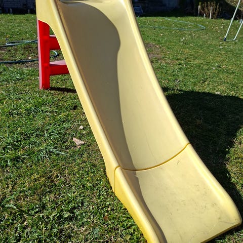 Säljer en rubust, men väl använd rutchkana. Den sitter på en lekstuga som nu ska tas ner.