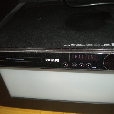 Philips dvd‑spelare i silverfärg. Strömkabel och fjärrkontroll medföljer enligt bild.