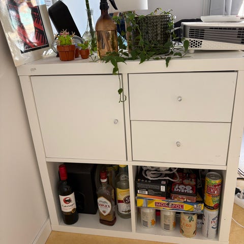 Säljer en vit IKEA KALLAX hylla med 8 fack (liggande modell).
