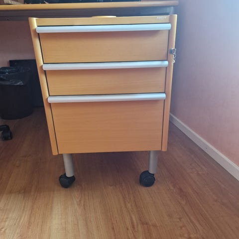Skrivbord som är lite svängd. Finns i Stenkumla