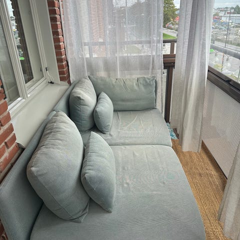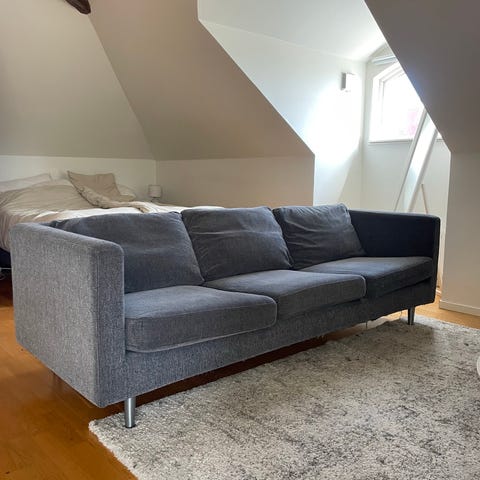 Soffan är väl omhändertagen, rök- och djurfri miljö, endast använd i vardagsrum. Dynor och stoppning fortfarande fasta och fina. Nypris 5095kr. Säljer pga flytt och ny soffa. Inget slitage eller defekter på den.