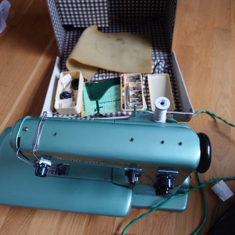 Singer symaskin med fotpedal och väska.