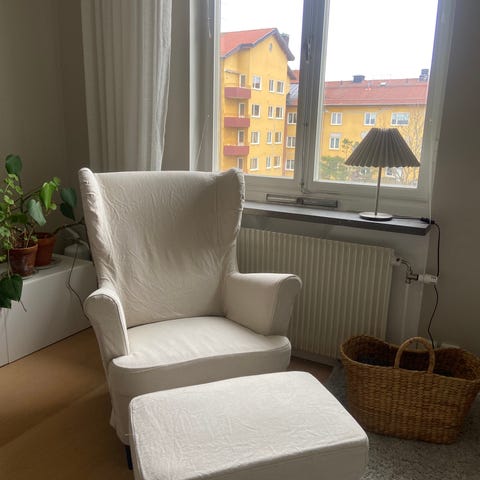 Säljes pga av flytt en öronlappsfåtölj av märket Strandmon, tyg och färg Nordvalla mörkgrå. Fåtöljen är i fin skick. Nypris 2 795 kr.