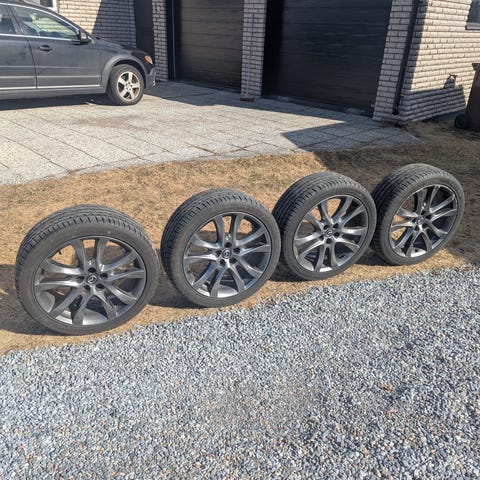 Goodyear däck 225/45/19 med Skoda original 19 tums fälgar. Däcken i bra skick ca 7 mm kvar men samtliga fälgar är kantstötta. Kan säkert åtgärdas av den händige om det stör utseendet. Däck och fälgar har suttit på en Skoda Karoq och passar många bilar inom VW familjen.