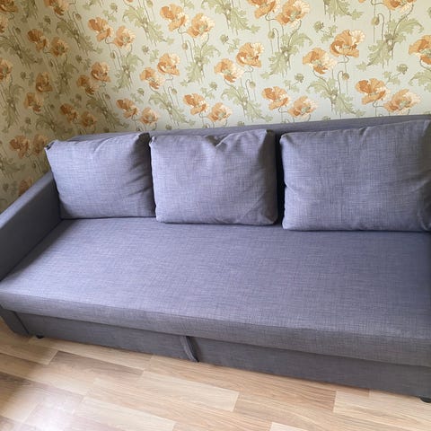 Bäddsoffa från Ikea i svart Manchestertyg. Använt skick men funkar fint. Kommer vara nedmonterad. Bortskänkes.