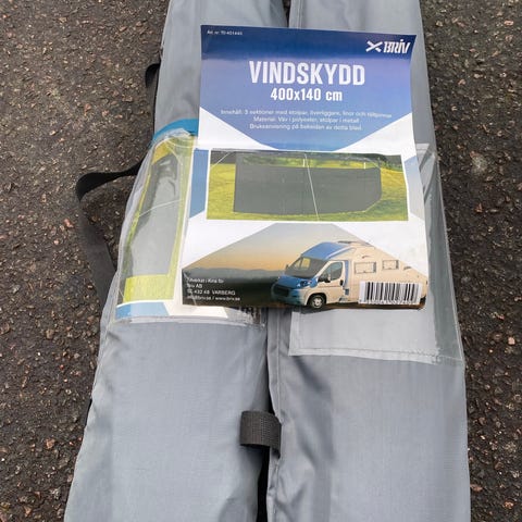 Vindskydd på 5 meter med fönster. Stålstänger med markspikar ger en bra stabilitet mot vind. Stängerna är även fjäderkopplade för en snabb och enkel montering. Neonfärgade tältlinor underlättar på kvällen.