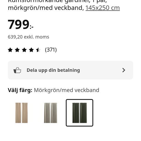 2st mörkläggningsgardiner från Ikea i mörkgrön färg