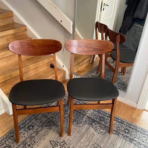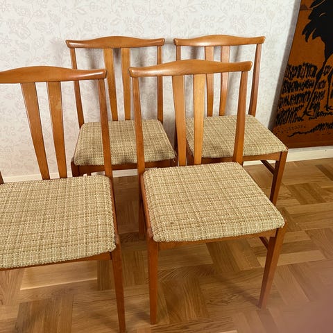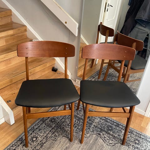 Säljer 6 st klassiska Farstrup-stolar från 60-talet. Tidlös design med fina linjer som passar både i moderna och retroinspirerade hem. Stolarna är i gott skick, stabila och bekväma att sitta på. Sitsarna är nyligen omklädda, vilket ger dem ett fräscht och uppdaterat utseende.
