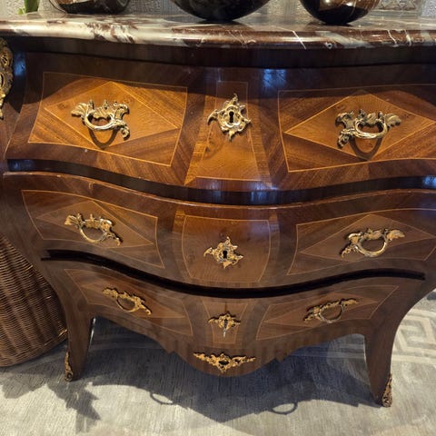 Vintage rokokobyrå i mahogny/marmorskiva 1950/1960-tal