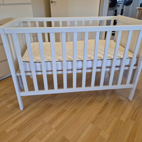 Troll spjälsäng vit, madrass från Prolana och juniorsida