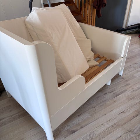IKEA juniorsäng . Madrass ingår. Passar som övergångssäng mellan spjälsäng och fullstor säng för barn. Inköptes Juni 2025.