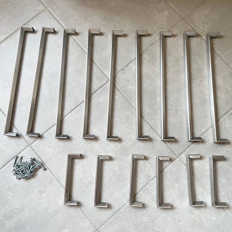 Handtag i rostfritt stål med två fästpunkter och medföljande skruvar. Passar exempelvis till köksluckor, lådor eller garderober där ett rakt, modernt metallhandtag önskas. 128 cc.