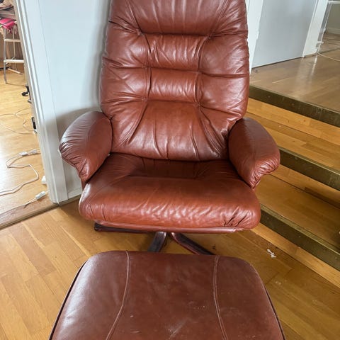 Ljusbrun skinnfåtölj, vridbar, inställbar lutning