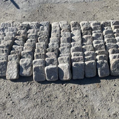 Natursten gatsten i grå nyans i kubformade block. Passar för exempelvis uppfarter, gångar, trädgårdsgångar eller dekorativa ytor utomhus. Stenarna kan läggas i olika mönster beroende på önskat utseende och underlag.