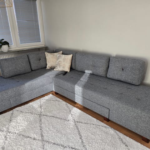 MIO tre-sits bäddsoffa med förvaring i bra skick. Ljusgrå.