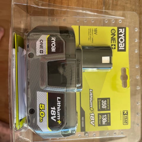 Ryobi One+ batteri 18V 4,0Ah litium. Batteriet är ett uppladdningsbart litiumjonbatteri som ingår i Ryobis One+-system och är kompatibelt med 18V-verktyg i samma serie. Kapaciteten är 4,0Ah, vilket ger längre driftstid per laddning jämfört med batterier med lägre amperetimmar. Levereras i originalförpackning med produktinformation och säkerhetsmärkning på baksidan.