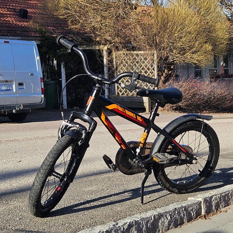 Stoy barncykel för unisex i svart färg. Cykeln har ram med låg instegshöjd, raka styren och fotbroms bak. Utrustad med reflexer på hjul och pedaler samt kedjeskydd. Passar som vardagscykel för barn vid cykling till skola, fritidsaktiviteter och lek.